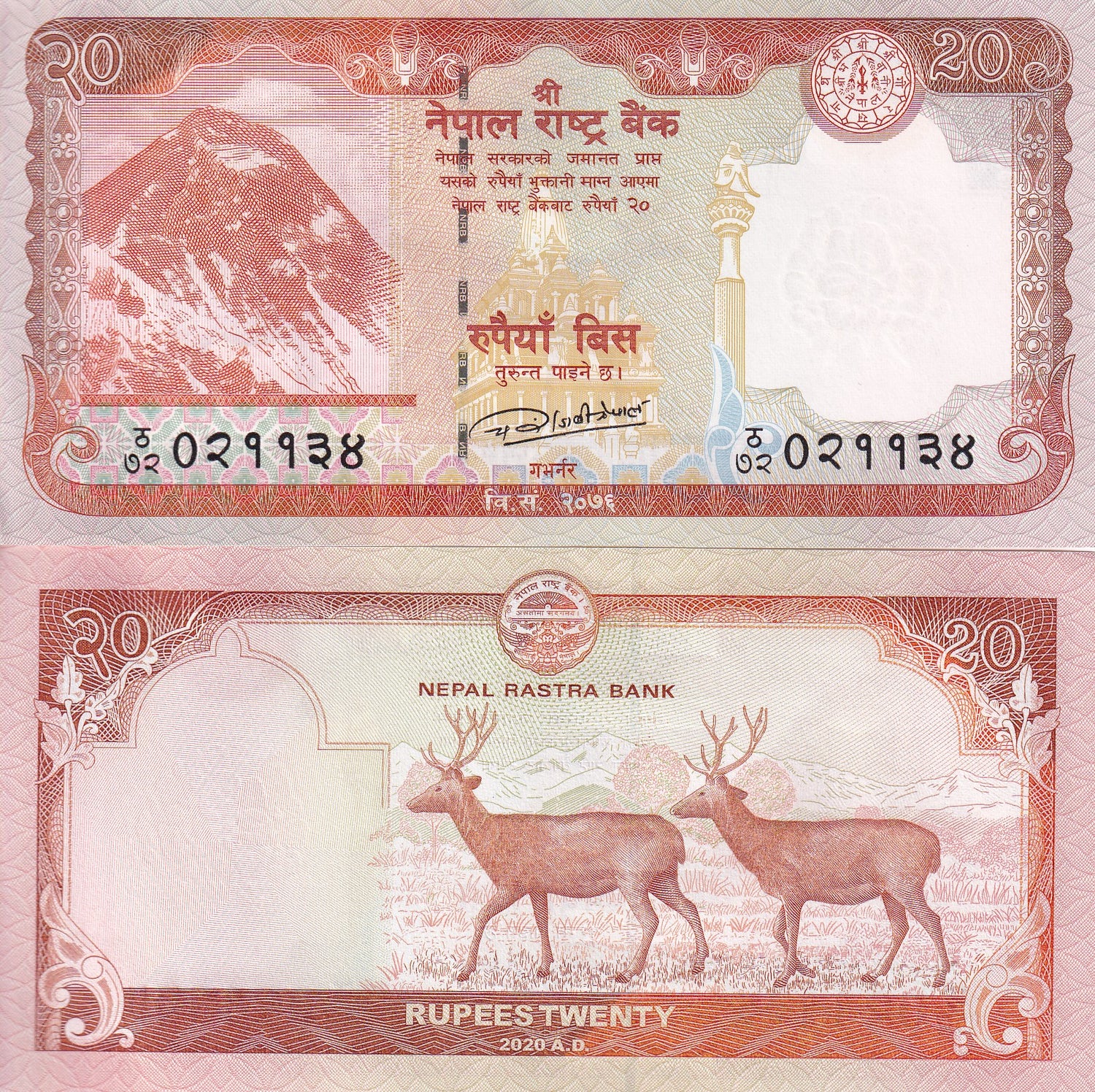 Nepal 20 Rupees 2020 P 78 b Sambar Deers UNC
