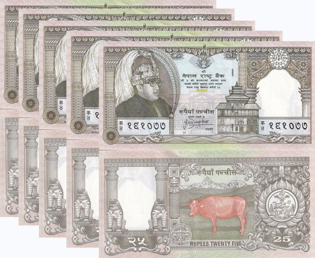 Nepal 25 Rupees ND 1997 P 41 UNC LOT 5 PCS