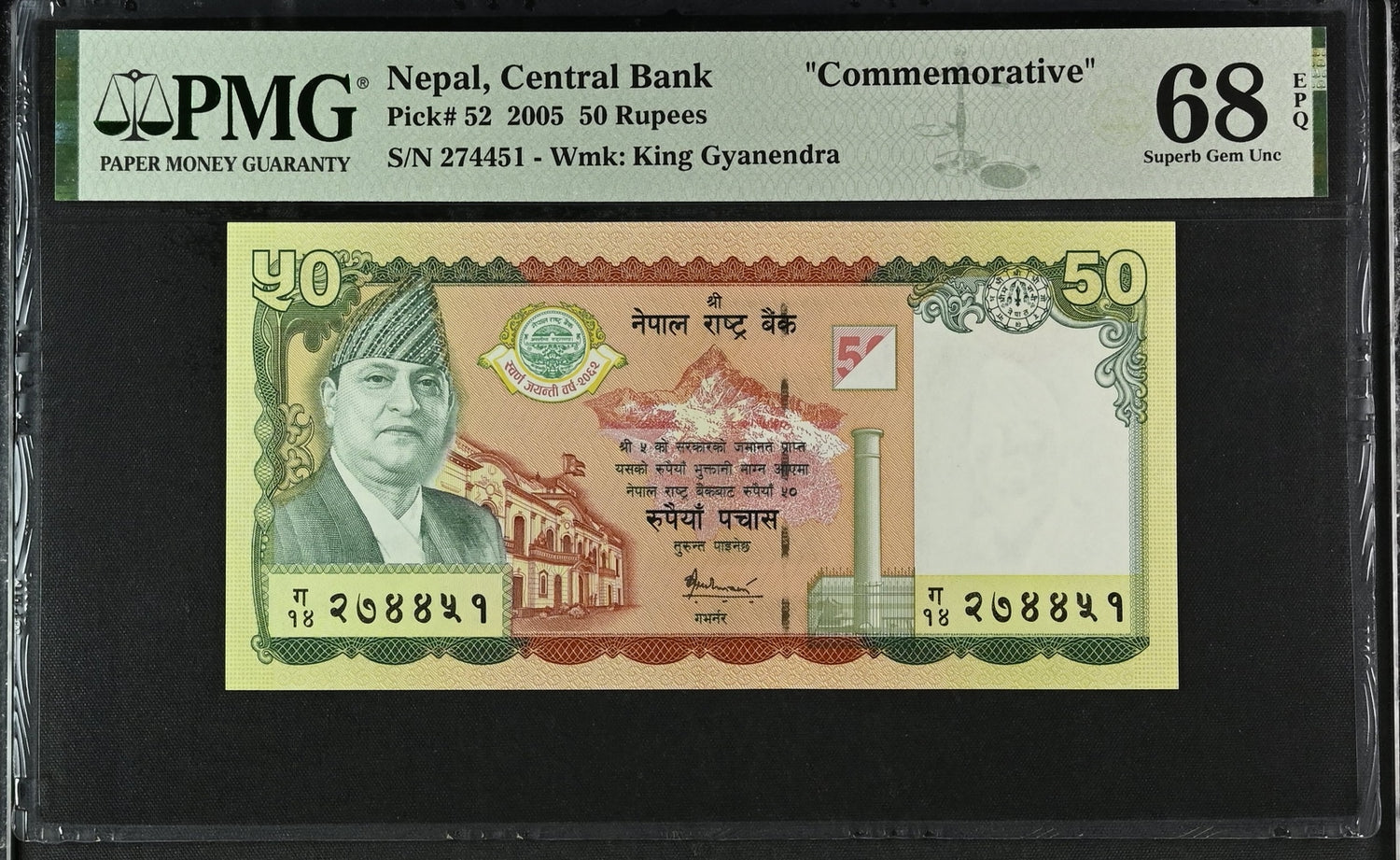 Nepal 50 Rupees 2005 P 52 Commemorative Superb Gem UNC PMG 68 EPQ