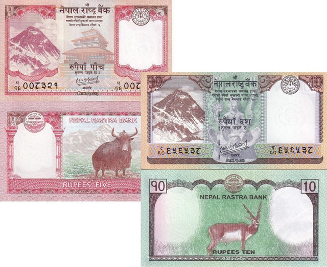 Nepal set 2 UNC 5 10 Rupees 2024 P 76 77 NEW Date
