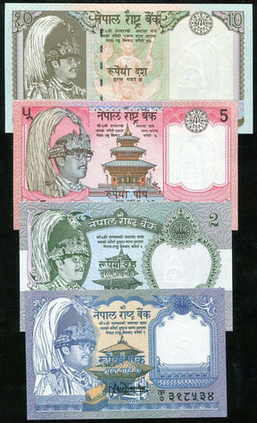 Nepal Set 4 Pcs 1 2 5 10 Rupees P 29 30 31 37 Random Signs AUnc