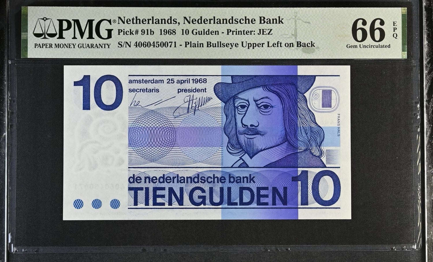 Netherlands 10 Gulden 1968 P 91 b Gem UNC PMG 66 EPQ