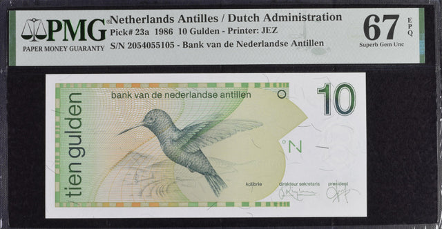 Netherlands Antilles 10 Gulden 1986 P 23 a Superb Gem UNC PMG 67 EPQ