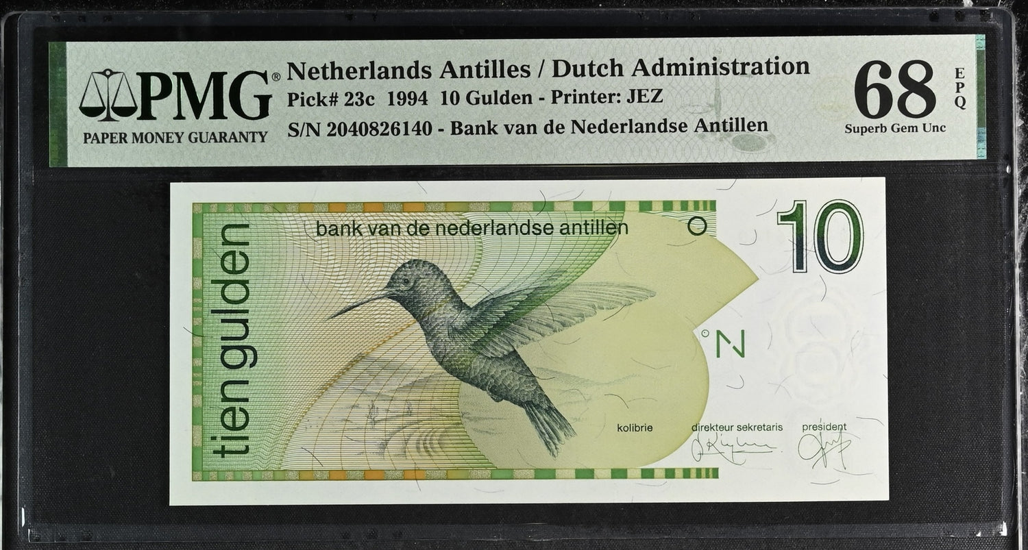 Netherlands Antilles 10 Gulden 1994 P 23 c Superb Gem UNC PMG 68 EPQ Top Pop