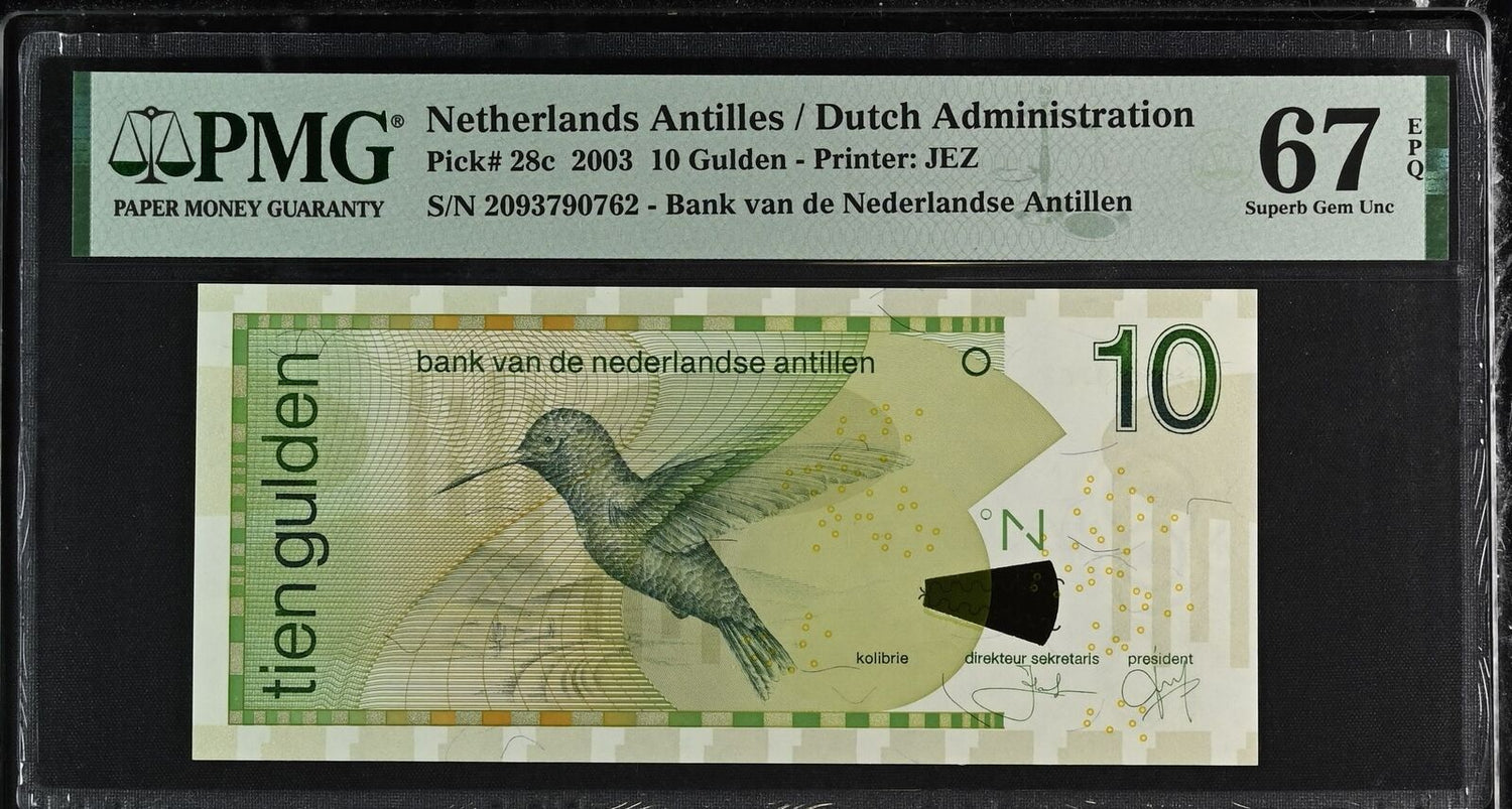 Netherlands Antilles 10 Gulden 2003 P 28 c Superb Gem UNC PMG 67 EPQ