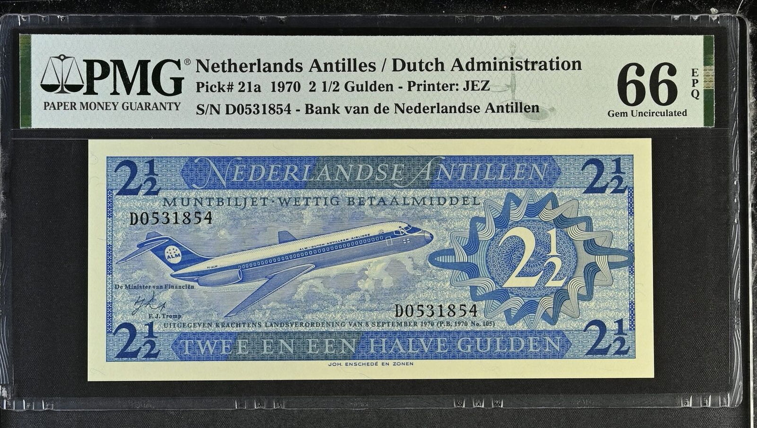 Netherlands Antilles 2 1/2 Gulden 1970 P 21 a Gem UNC PMG 66 EPQ