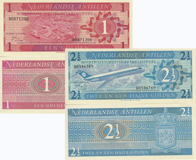 Netherlands Antilles Set 2 PCS 1 2 1/2 Gulden 1970 P 20 P 21 UNC