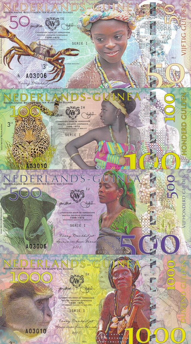 Netherlands GUINEA Set 4 PCS 50 100 500 1000 Gulden 2016 Fantasy