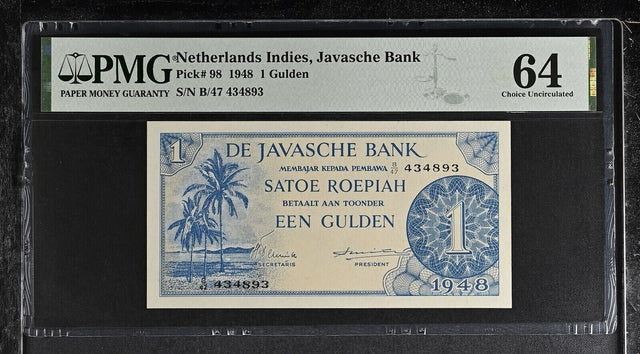 Netherlands Indies 1 Gulden 1948 P 98 Choice UNC PMG 64