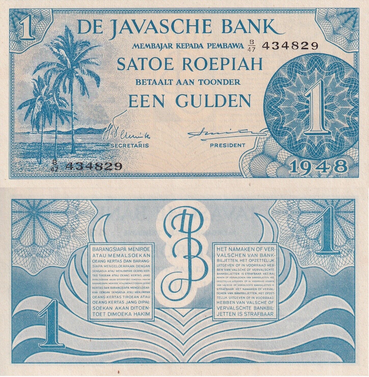 Netherlands Indies 1 Gulden 1948 P 98 UNC-