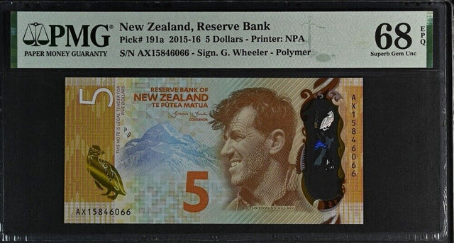 New Zealand 5 Dollars 2015 P 191 a Superb Gem UNC PMG 68 EPQ