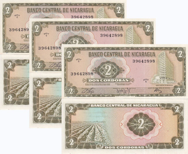Nicaragua 10 Cordobas 1972 P 121 a UNC LOT 3 PCS