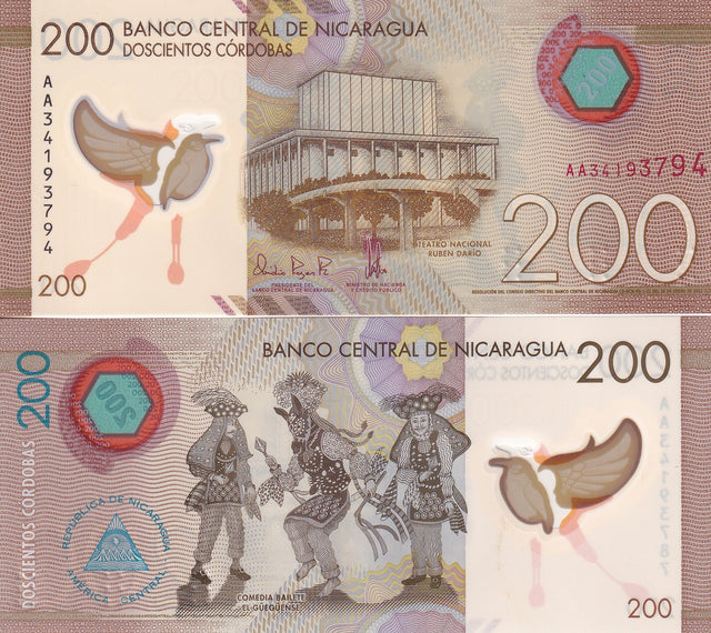 Nicaragua 200 Cordobas 2022 P 213 b Polymer UNC