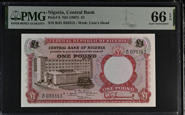 Nigeria 1 Naira ND 1967 P 8 Gem UNC PMG 66 EPQ