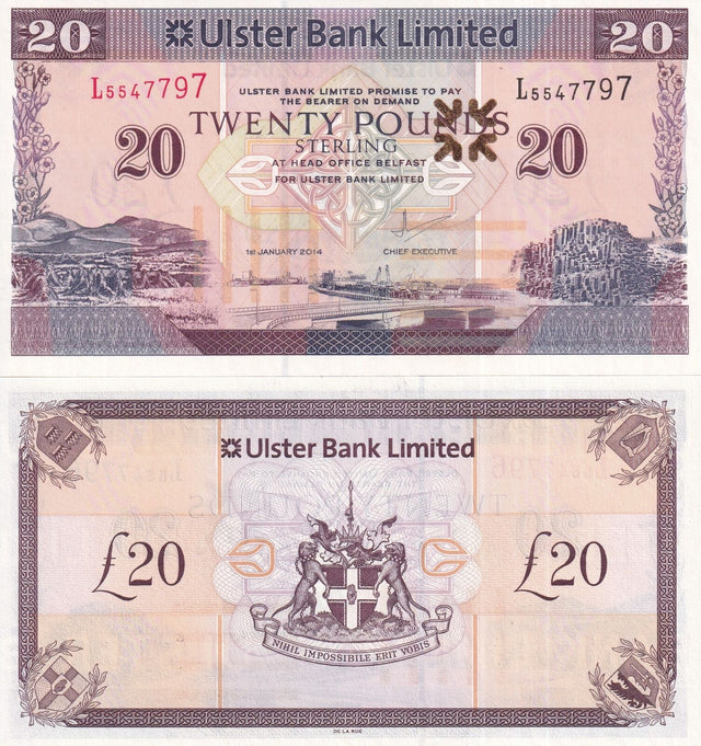 Northern Ireland 20 Pounds 2014 P 342 b UNC