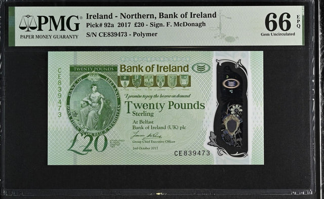 Northern Ireland 20 Pounds 2017 P 92 a Gem UNC PMG 66 EPQ