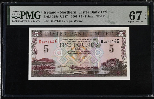 Northern Ireland 5 Pounds 2001 P 335 C Superb Gem UNC PMG 67 EPQ TOP POP