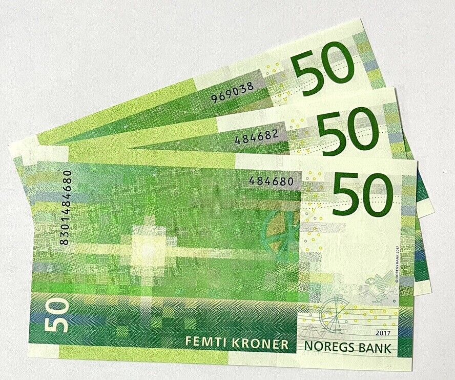 Norway 50 Kroner 2017 P 53 UNC LOT 3 PCS