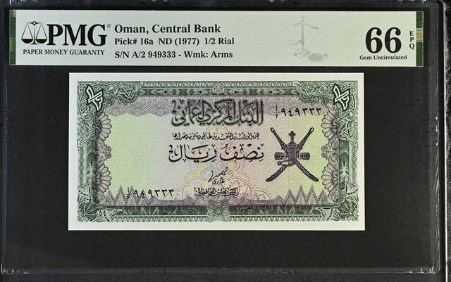 Oman 1/2 Rial ND 1977 P 16 a Gem UNC PMG 66 EPQ
