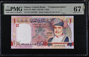 Oman 1 Rial 2005 P 43 Commemorative Superb Gem UNC PMG 67 EPQ