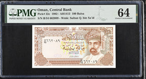 Oman 100 Baisa 1992 P 22 c Choice UNC PMG 64