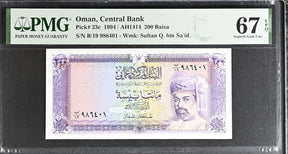 Oman 200 Baisa ND 1994 P 23 c Superb Gem UNC PMG 67 EPQ TOP POP