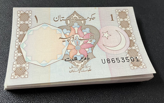 Pakistan 1 Rupee ND 1984-2001 P 27 j UNC LOT 100 PCS 1 Bundle