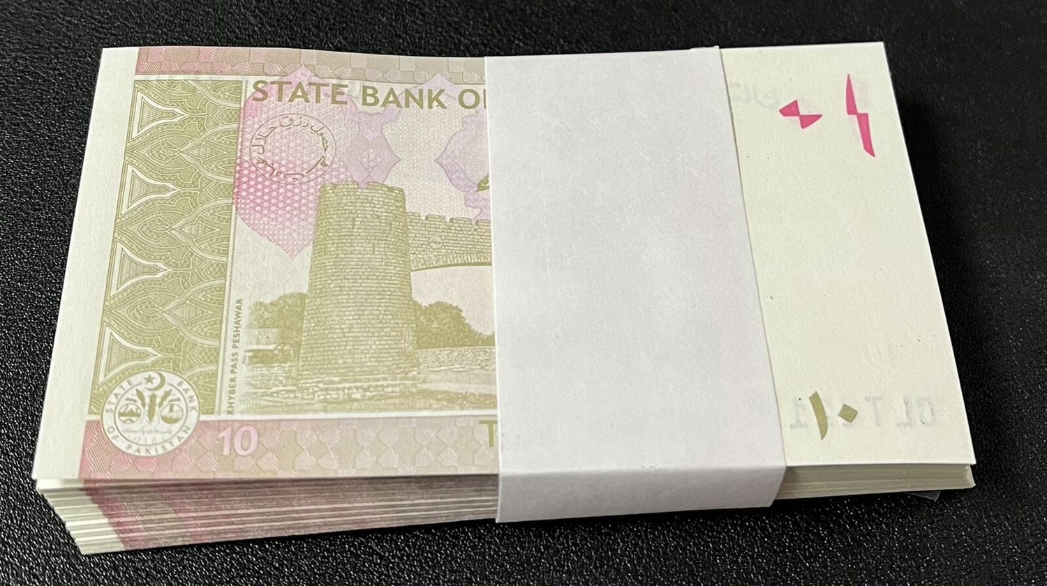 Pakistan 10 Rupees 2024 P 45 LOT 100 UNC 1 BUNDLE