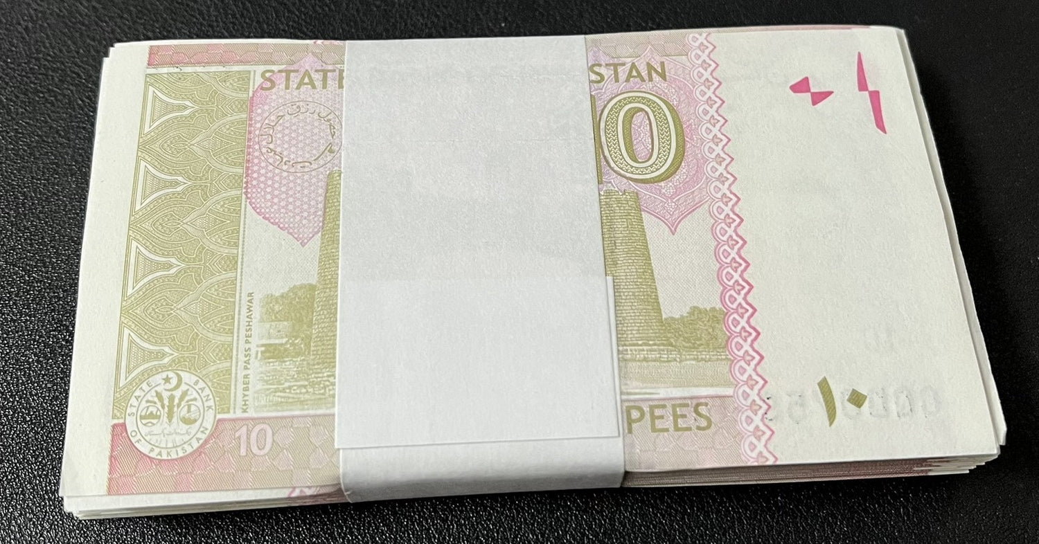 Pakistan 10 Rupees 2025 P 45 LOT 100 PCS 1 BUNDLE AUnc