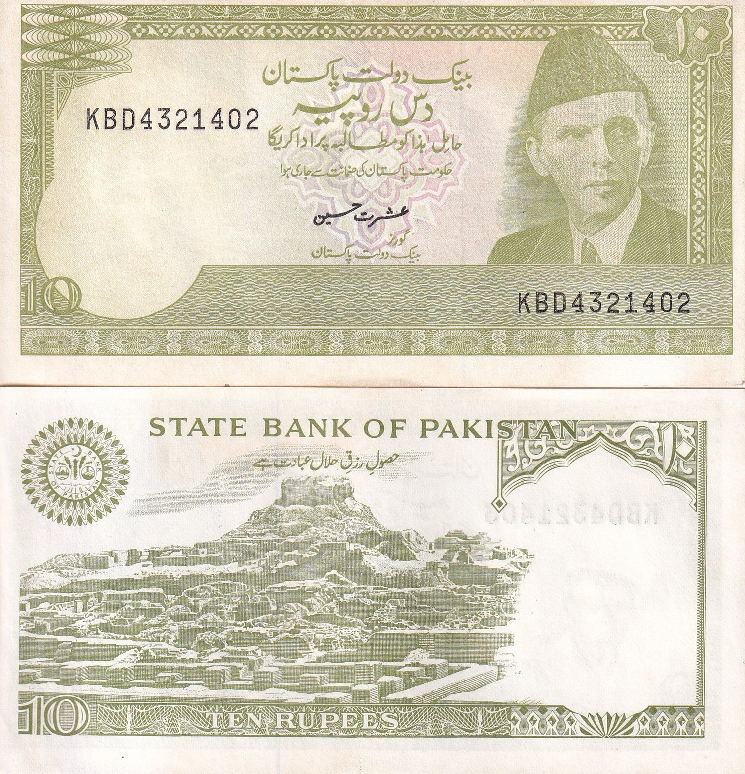 Pakistan 10 Rupees ND 1984-2006 P 39 Ishrat Hussain UNC with Yellow Tone