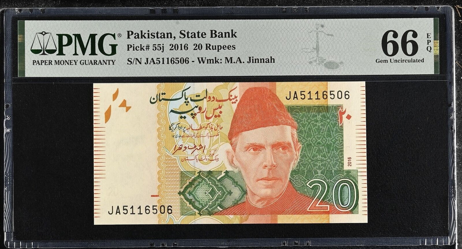 PAKISTAN 20 RUPEES 2016 P 55 j Gem UNC PMG 66 EPQ