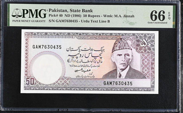 Pakistan 50 Rupees ND 1986 P 40 Gem UNC PMG 66 EPQ