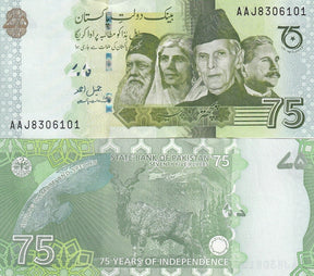 Pakistan 75 Rupees 2022 P 56 75th Comm. Mixed Prefix UNC
