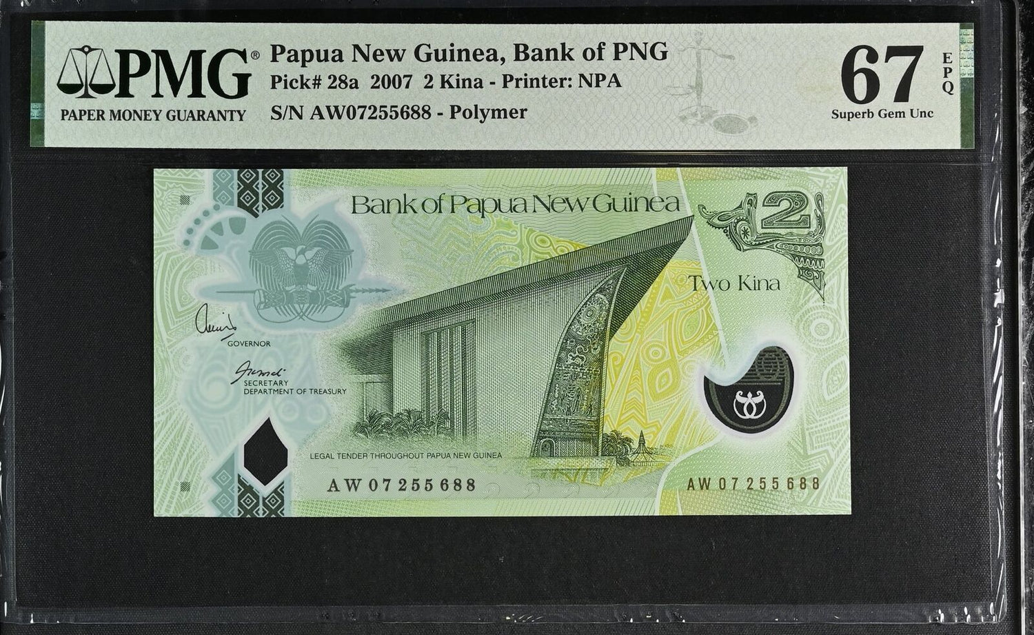Papua New Guinea 2 Kina 2007 P 28 a Superb Gem UNC PMG 67 EPQ
