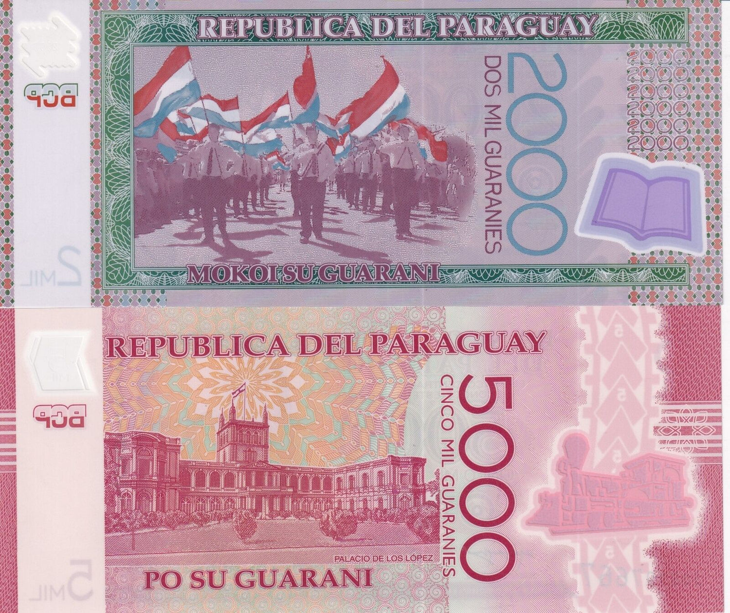 Paraguay Set 2 PCS 2000 5000 Guaranies Random Date P 228 P 234 UNC