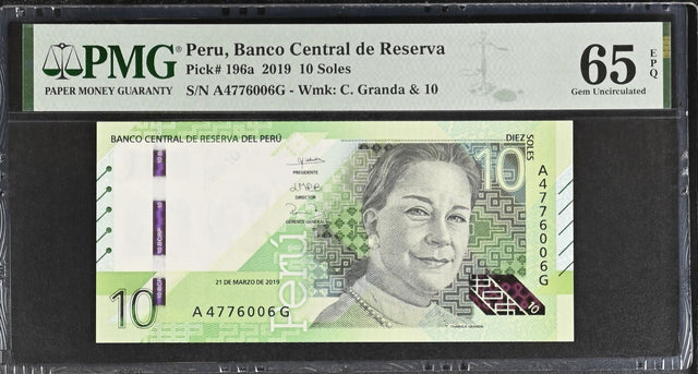 Peru 10 Soles 2019 P 196 a Gem UNC PMG 65 EPQ