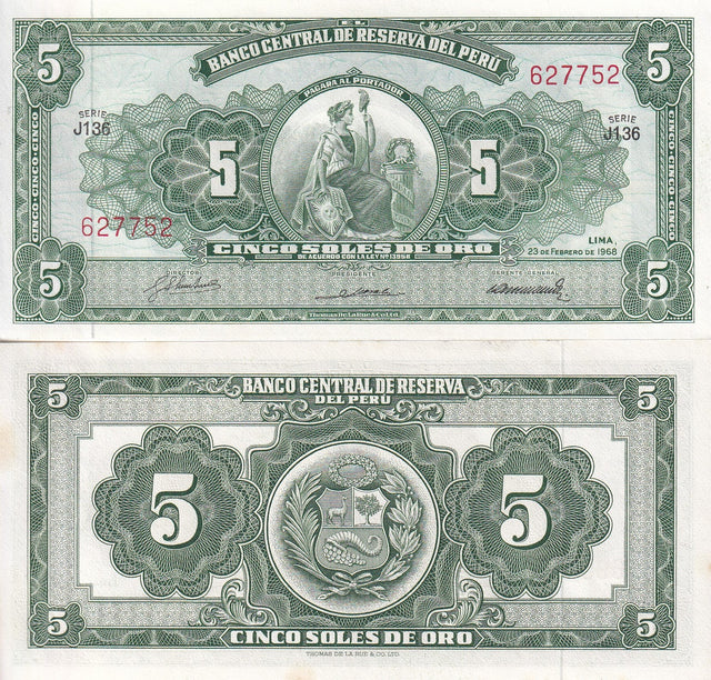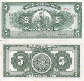Peru 5 Soles De Oro 1968 P 83 AUnc