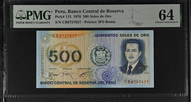 Peru 500 Soles 1976 P 115 Choice UNC PMG 64