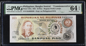 Philippines 10 Piso 1981 P 167 a Commemorative Choice UNC PMG 64 EPQ