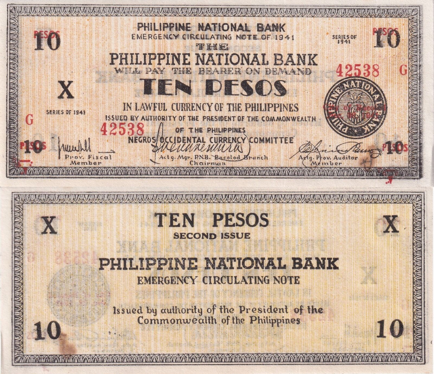 Philippines 10 Piso ND 1941 P S627 b UNC With Yellow Foxing