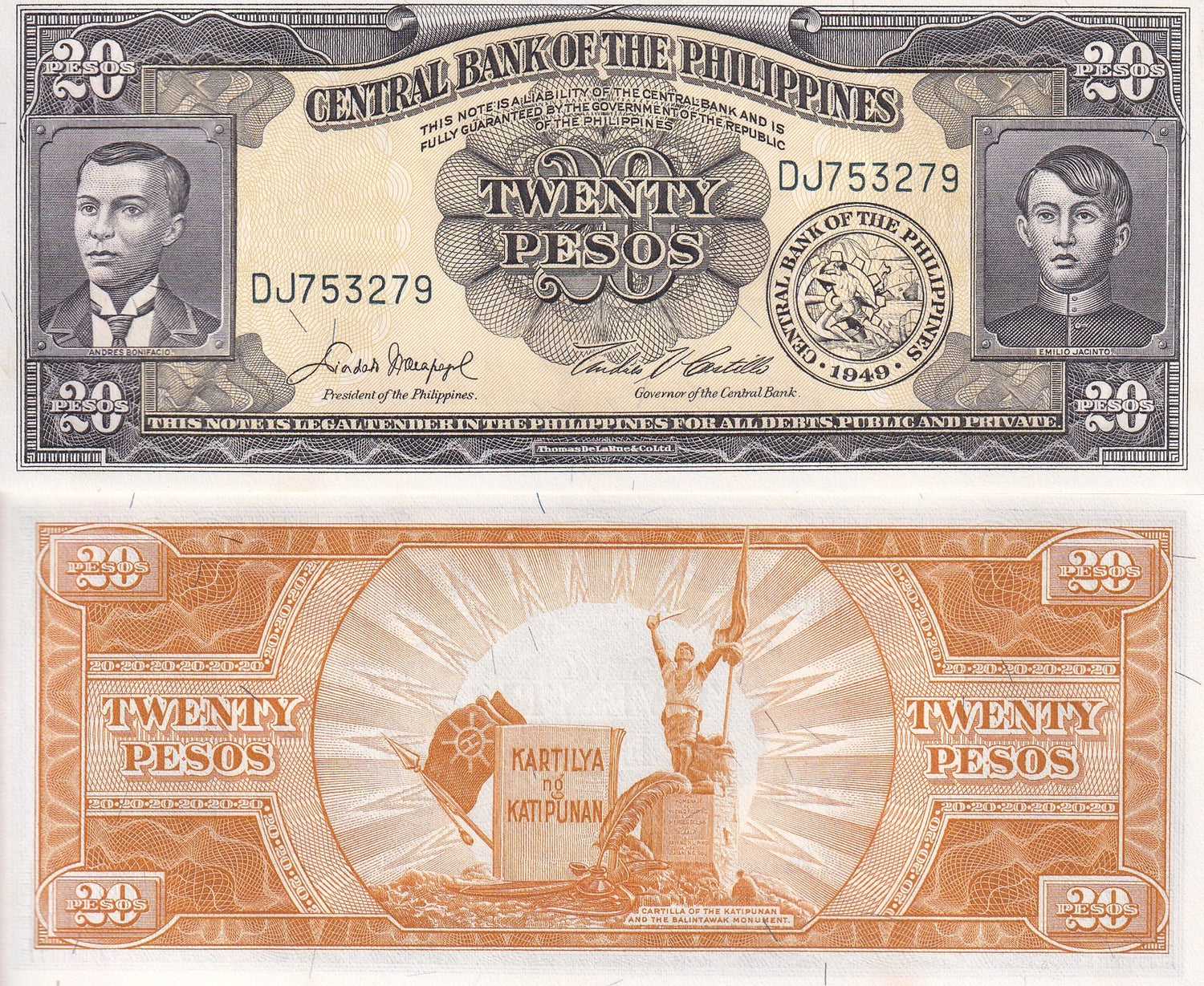 Philippines 20 Pesos 1949 Thomas De La Rue P 137 UNC