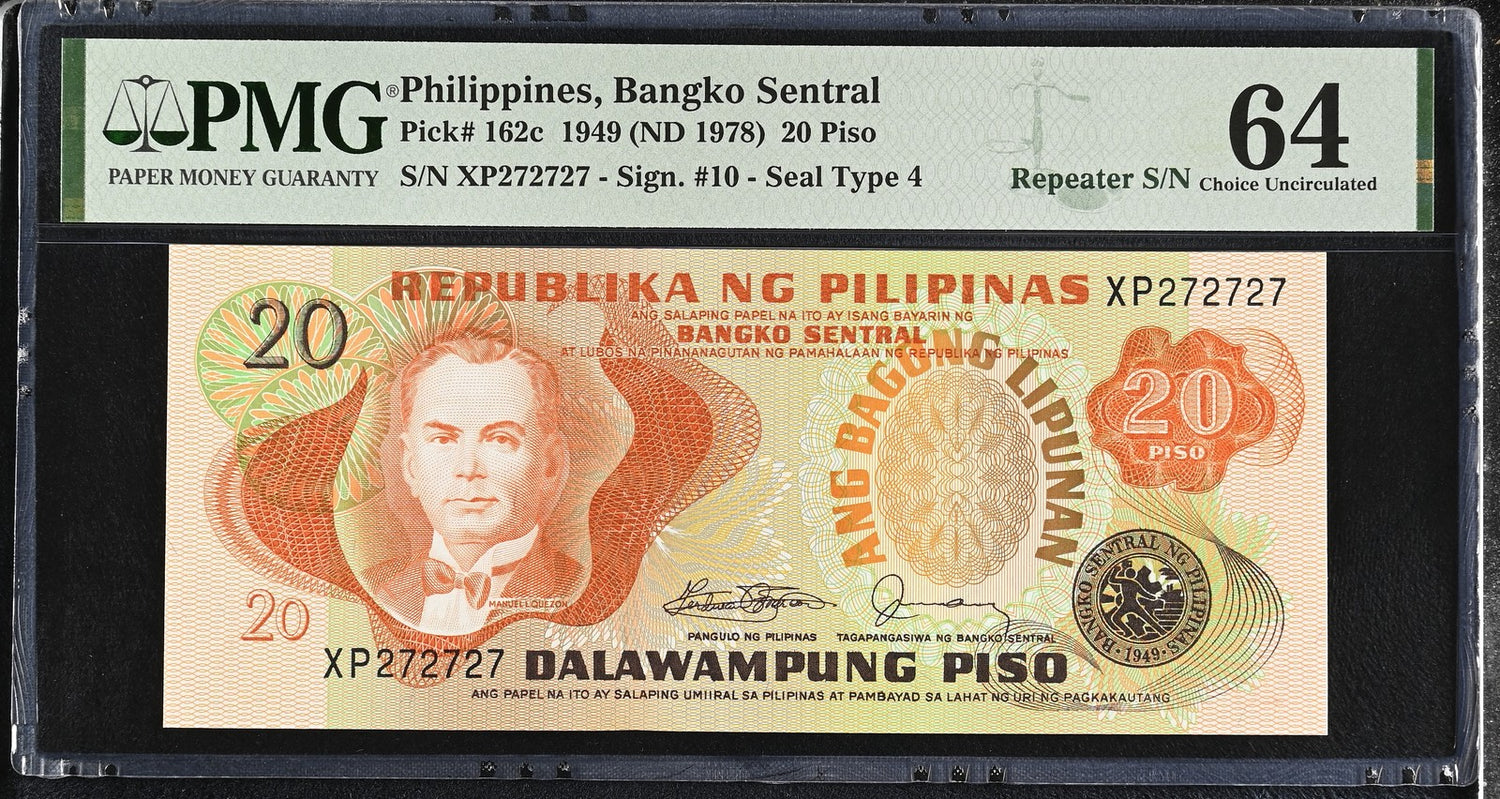 Philippines 20 Piso 1949 ND 1978 P 162 c REPEATER Choice UNC PMG 64