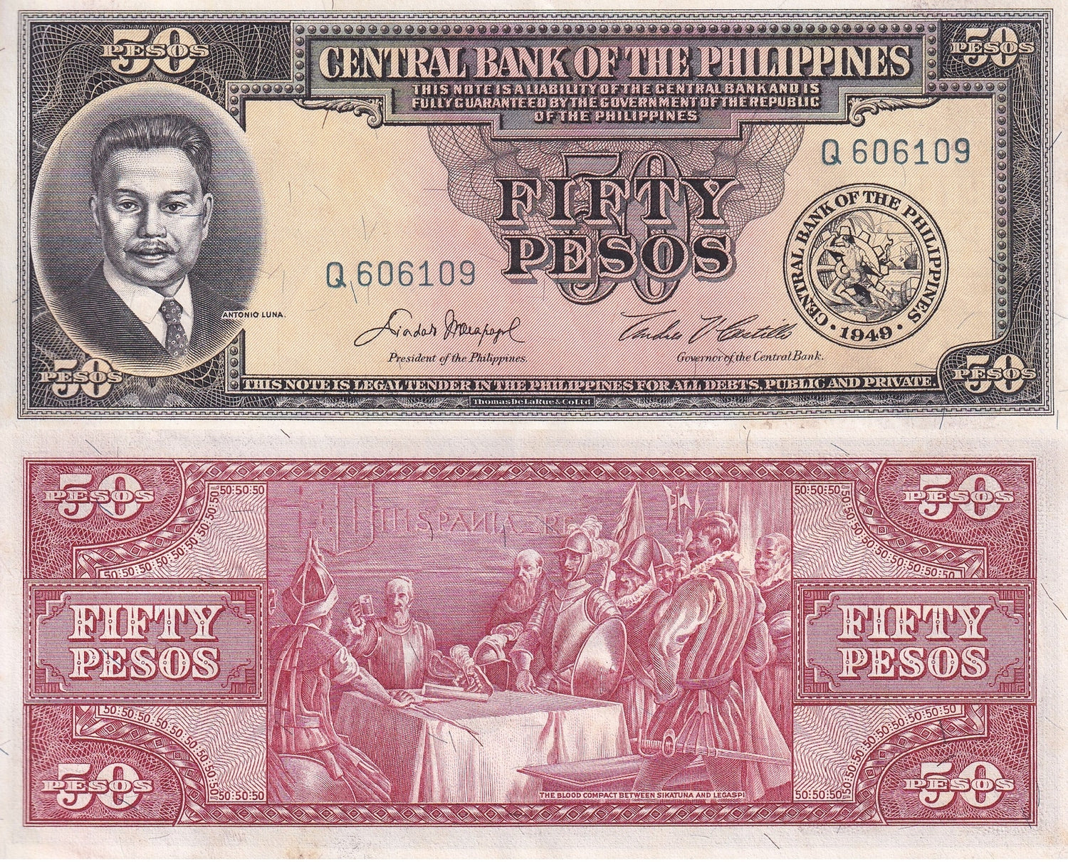 Philippines 50 Pesos 1949 De La Rue P 138 AUnc/W Tone