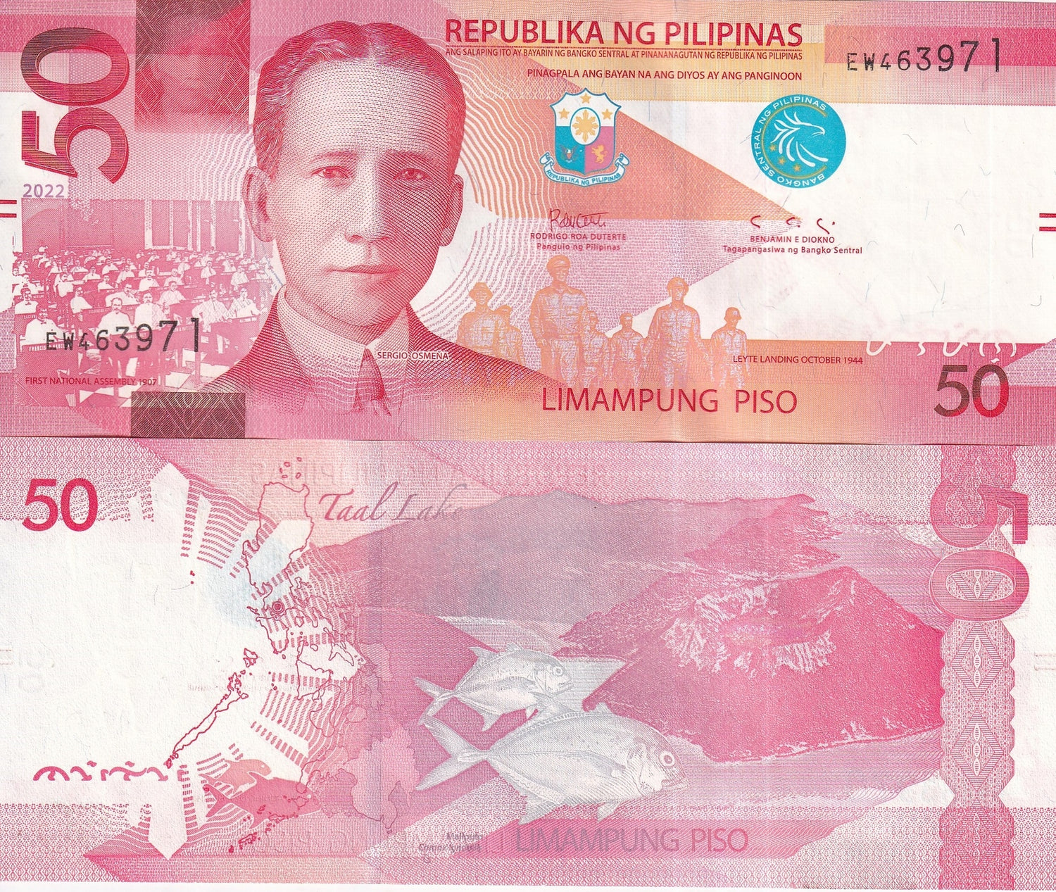 Philippines 50 Pesos 2022 P 224 UNC with Blind Mark