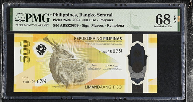 Philippines 500 Piso 2024 P 252 a Superb Gem UNC PMG 68 EPQ