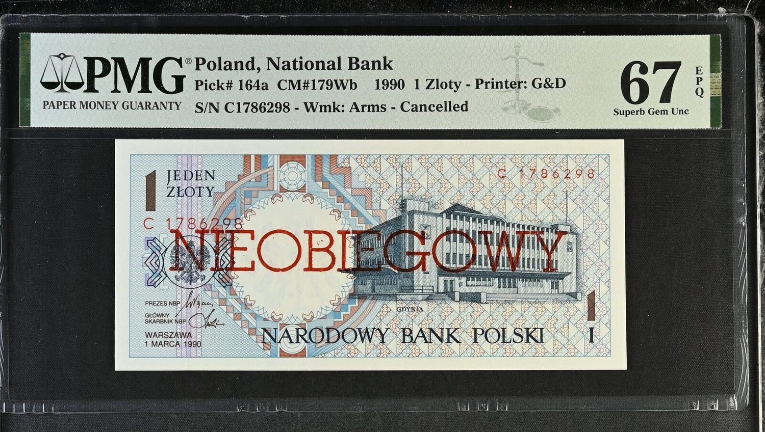 Poland 1 Zlotych 1990 P 164 a Cancelled Superb Gem UNC PMG 67 EPQ