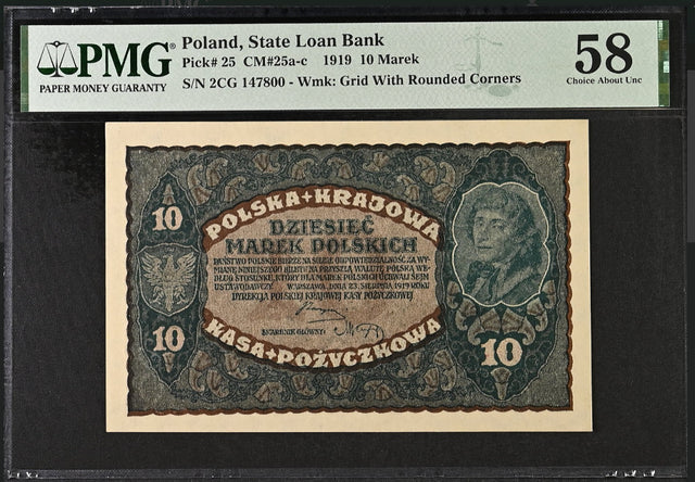 Poland 10 Marek 1919 P 25 Choice About UNC PMG 58