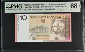 Poland 10 Zlotych 2008 P 179 a Comm. Superb Gem UNC PMG 68 EPQ