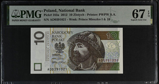 Poland 10 Zlotych 2012 P 183 a Superb Gem UNC PMG 67 EPQ