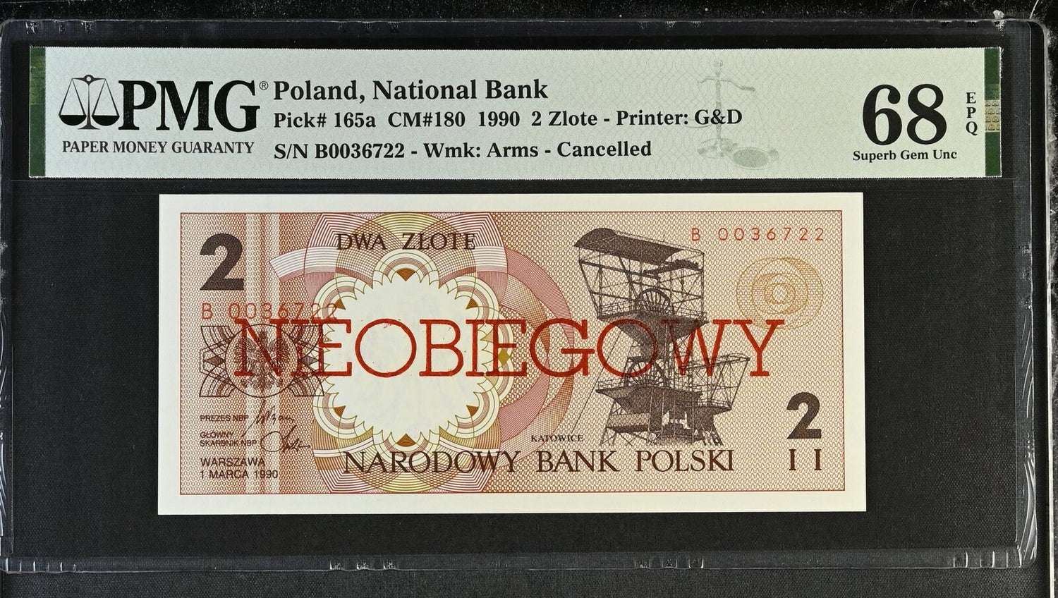 Poland 2 Zlotych 1990 P 165 a Cancelled Superb Gem UNC PMG 68 EPQ